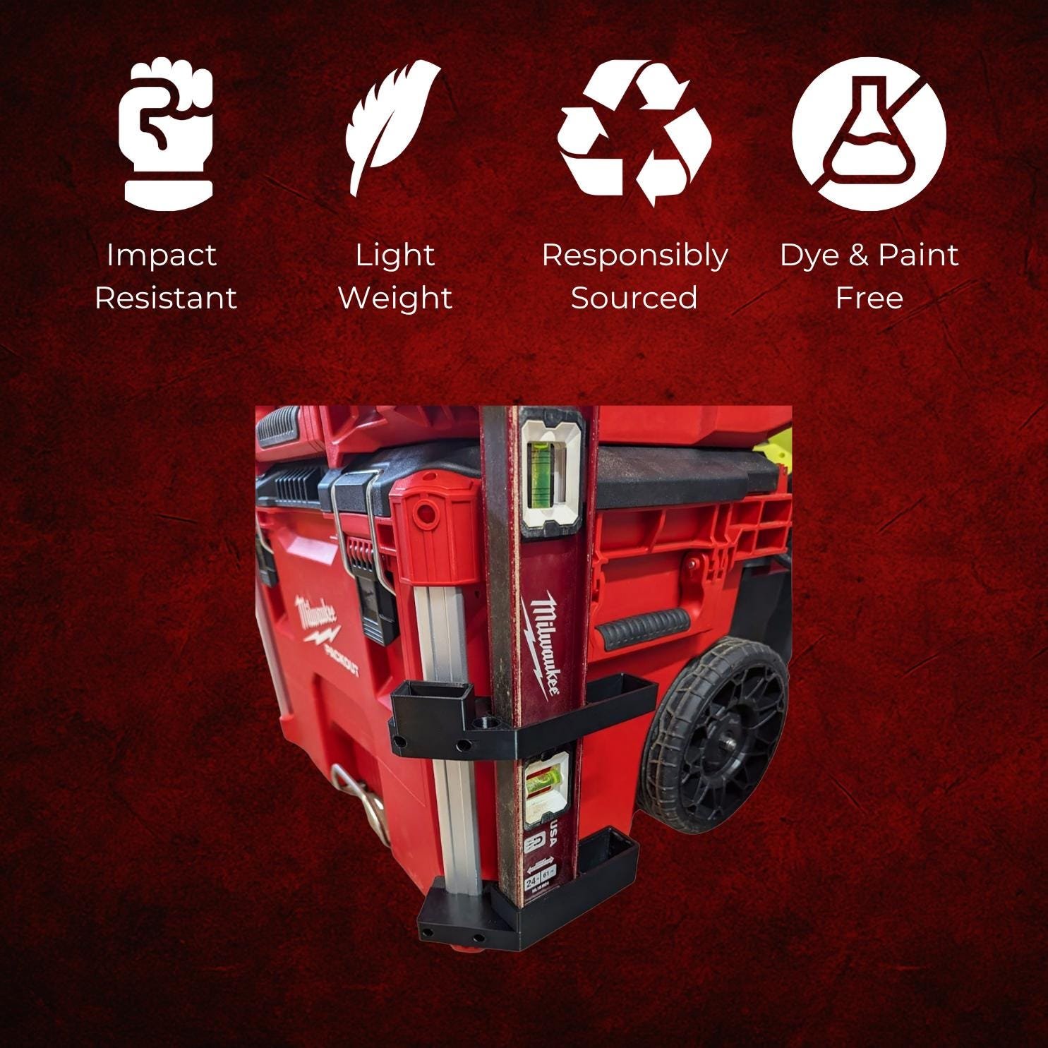 5‑in‑1 Tool Level Holder Compatible with Packout Toolbox – Organizer for Levels, Squares & Other Framing Tools, Left or Right Side Mount