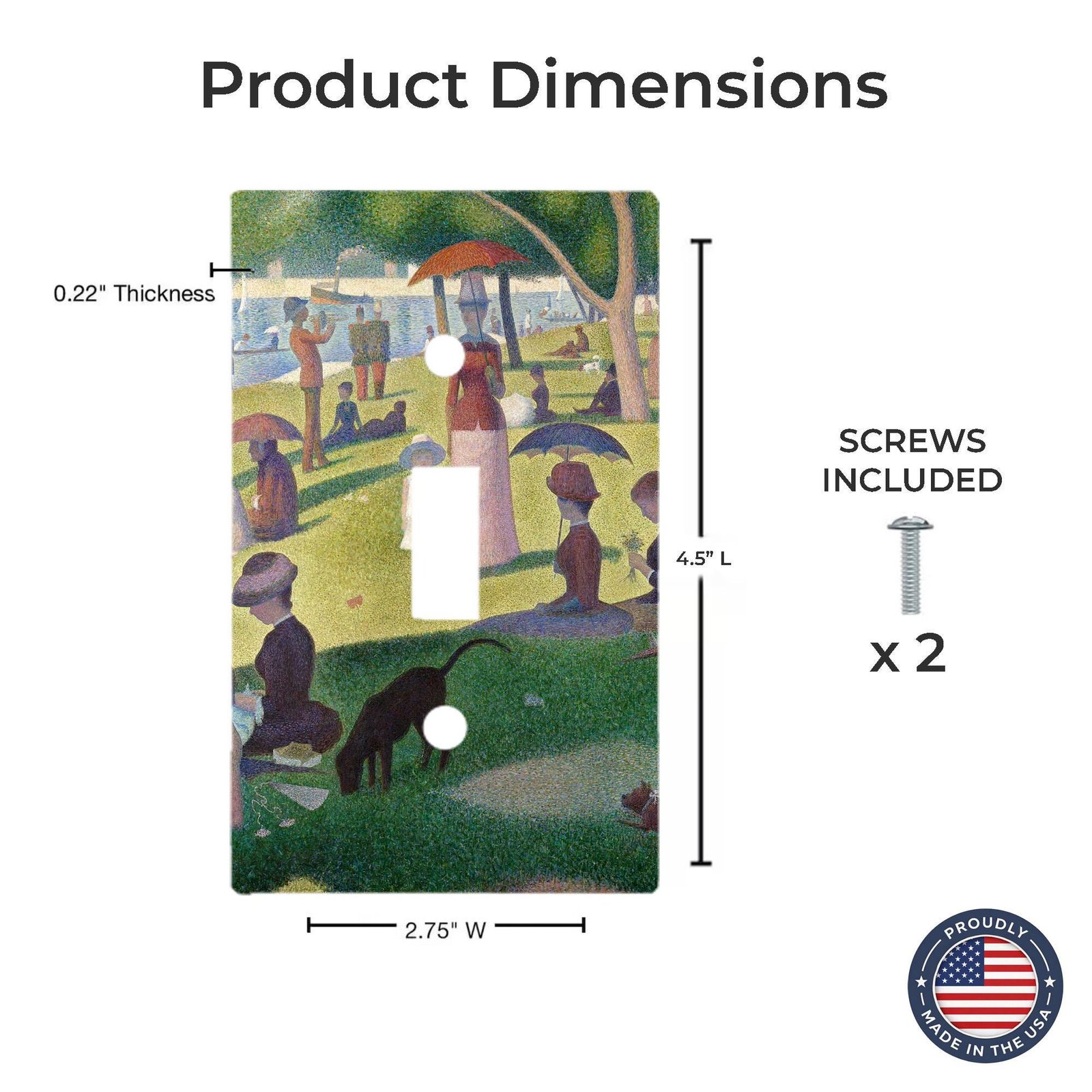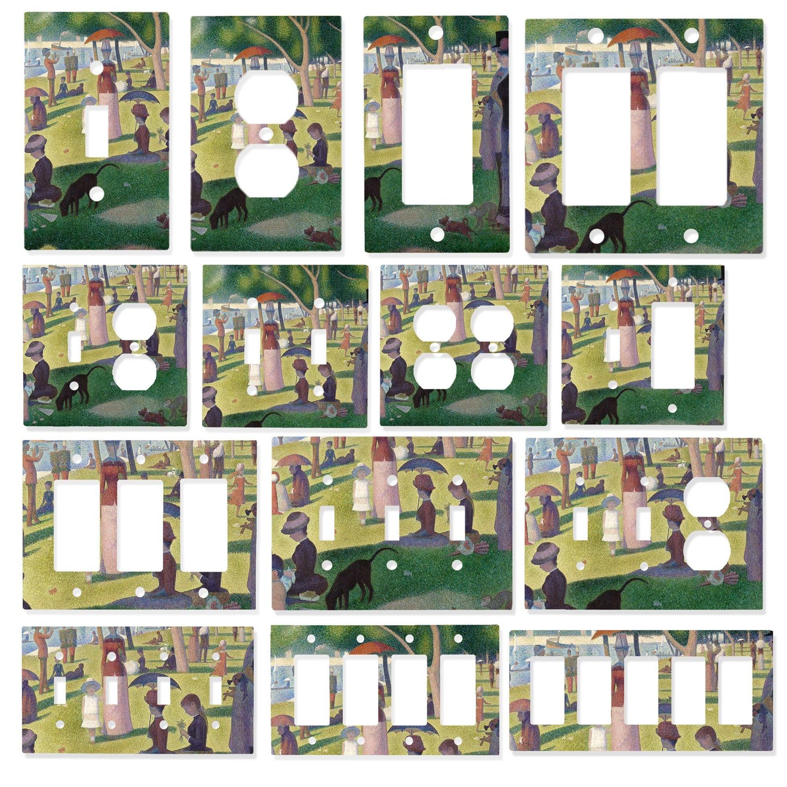 Add a touch of classic European artistry to your home with this A Sunday Afternoon on the Island of La Grande Jatte light switch cover, inspired by the iconic Pointillist masterpiece by Georges Seurat. Instantly recognizable for its dot-based technique and balanced composition, this design transforms an everyday switch or outlet into a refined decorative accent.