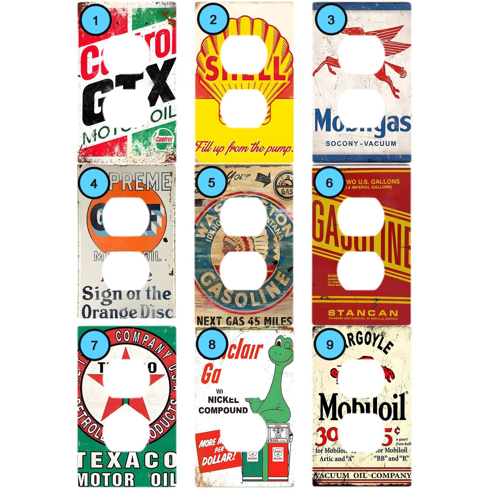 Vintage Gas & Oil Companies Power Outlet Plate Covers – Made In USA – 9 Unique Styles